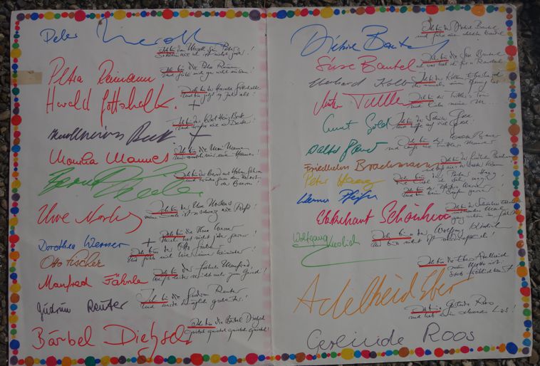 Der „Woisch-no-Tisch“, auf dem die Tagebücher, die damals alle Schüler zu schreiben hatten, (so war das damals anderscht herum eben auch !!!) die Fotos und andere Erinnerungen, die ausgelegt waren, war am letzten Samstag ständig heftig umlagert. Zur Überraschung aller war das Original-Tagebuch der Klasse 6 von 1966 aufgetaucht; es hatte ein total vergessenes Bühnendasein zusammen mit Steinmardern und Siebenschläfern auf der Bantel’schen Bühne geführt. Der Fall ist verjährt.