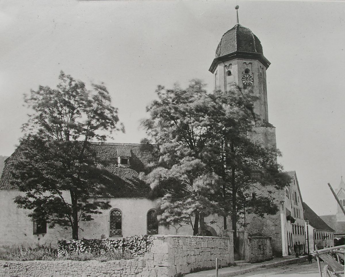 Vor 1900: Die katholische Kirche St. Peter und Paul mit dem alten Turm (Archiv Müller)